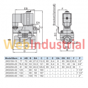- Modelo 2L 2/2 vías pilotado internamente y normalmente cerrado